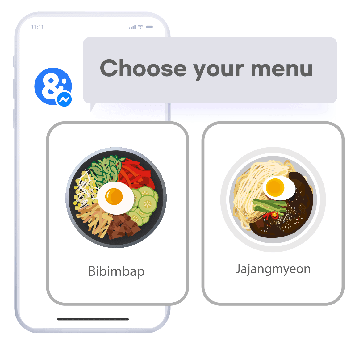 &Order takes away the need to download additional apps. Simply look up &Order with your preferred messenger and language. We're ready to take your order right away.