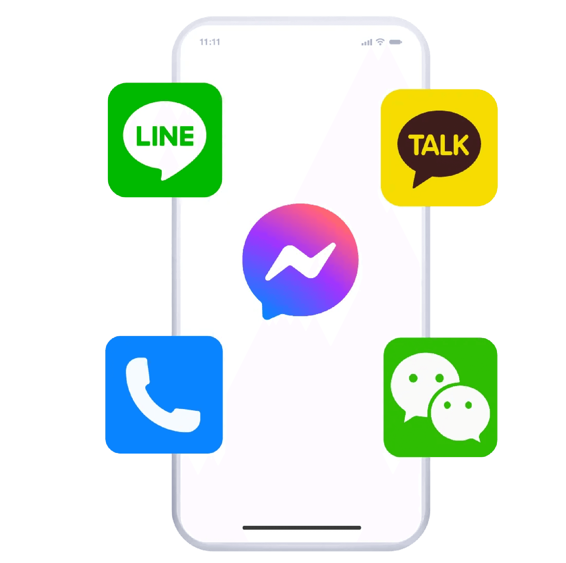 Available through a messenger of your choice. Facebook Messenger, Whatsapp, WeChat, Line, KakaoTalk. We have it all. Let's get rid of those useless apps that you hardly use.